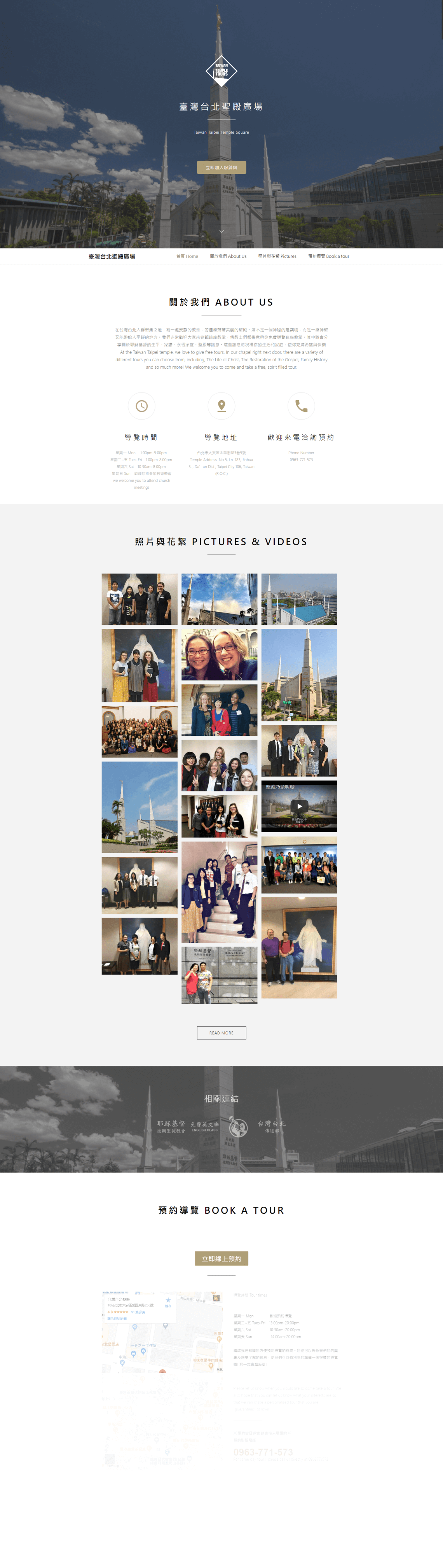 在台灣台北人群聚集之地,有一處安靜的教堂,旁邊座落著美麗的聖殿。這不是一個神秘的建築物,而是一座神聖又能帶給人平靜的地方。我們非常歡迎大家來參觀這座教堂,傳教士們都樂意帶你免費導覽這座教堂。其中將會分享關於耶穌基督的生平、家譜、永恆家庭、聖殿等訊息。這些訊息將祝福你的生活和家庭,使你充滿希望與快樂